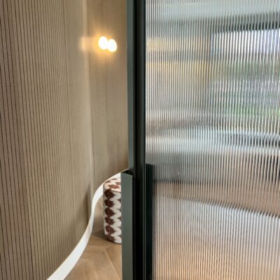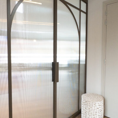 Voor een stijlvol interieurproject in Utrecht realiseerde Skygate in samenwerking met interieurontwerper Laura Engels exclusieve dubbele stalen taatsdeuren op maat met geribbeld glas.