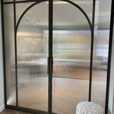 Dubbele ronde stalen deuren met geribbeld glas