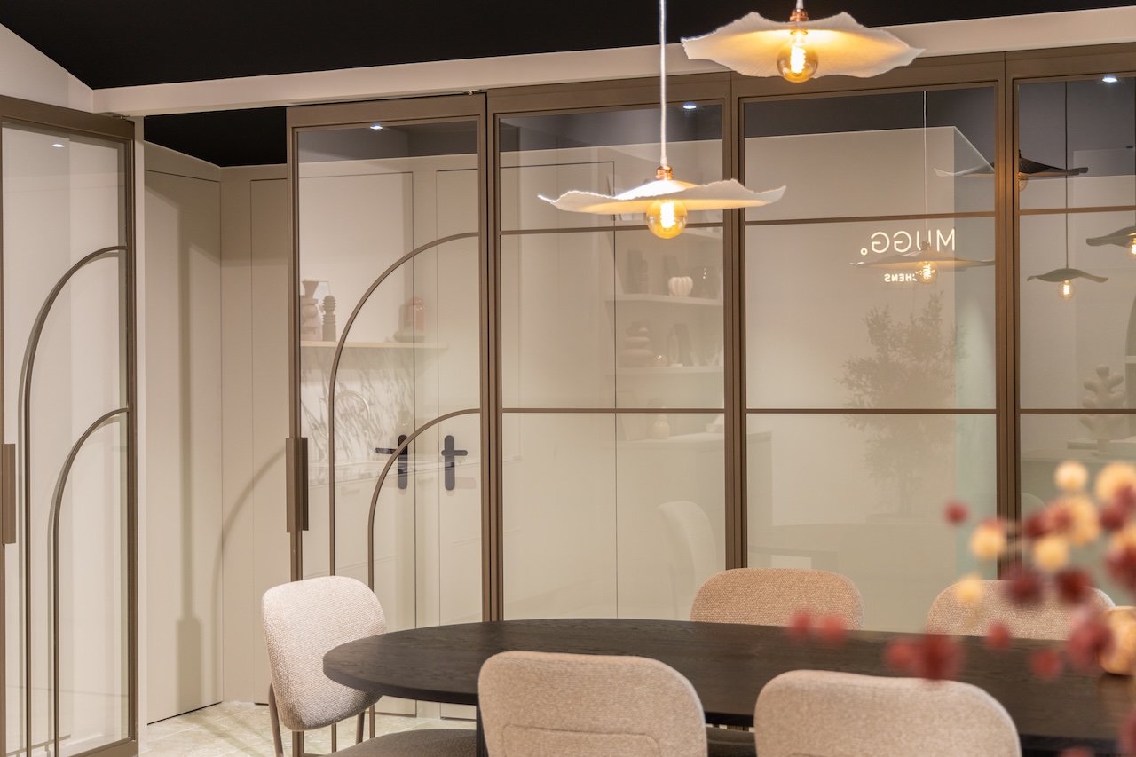 In de Showroom van MUGG Kitchens is een ronde stalen scheidingswand van Skygate geplaatst. Onze partner heeft gekozen voor een afwerking Metallic Bonded Bronze. Laat je inspireren in deze prachtige showroom.