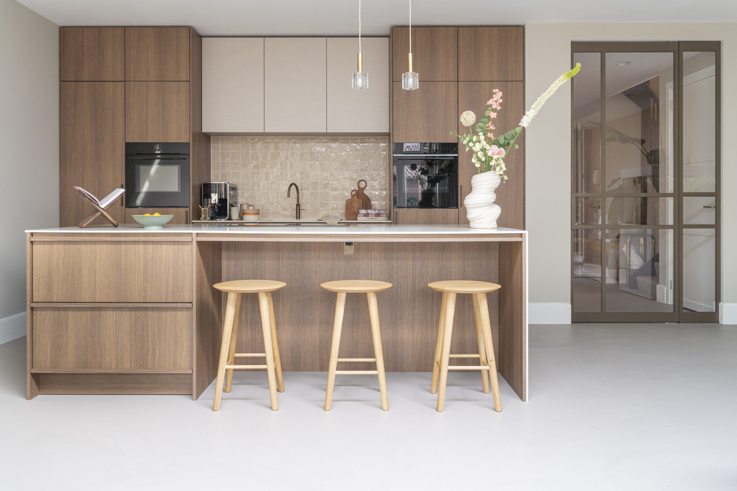 De bronzen kleur van de stalen binnendeuren van Skygate draagt bij aan het gevoel van warmte en gezelligheid in deze woning. Bovendien zijn de deurenĀ uitgevoerd in Metallic Bonded Bronze, wat perfect aansluit bij de rustige, beige verftinten en de warme houtkleuren in de keuken. Ook zorgt de combinatie van stalen deuren met houten accenten voor een prachtige en harmonieuze mix, waarbij de verschillende stijlen elkaar versterken en een uniek geheel vormen. Kortom: laat je inspireren door dit prachtige interieur!