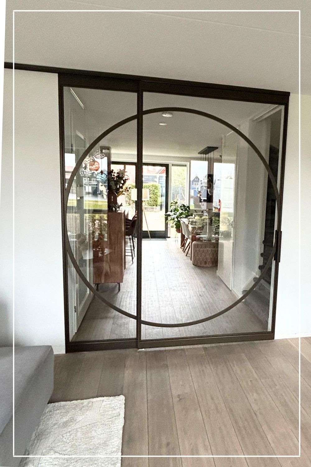 Ronde vormen in stalen deuren verzachten strakke lijnen en brengen rust en balans in een modern interieur.