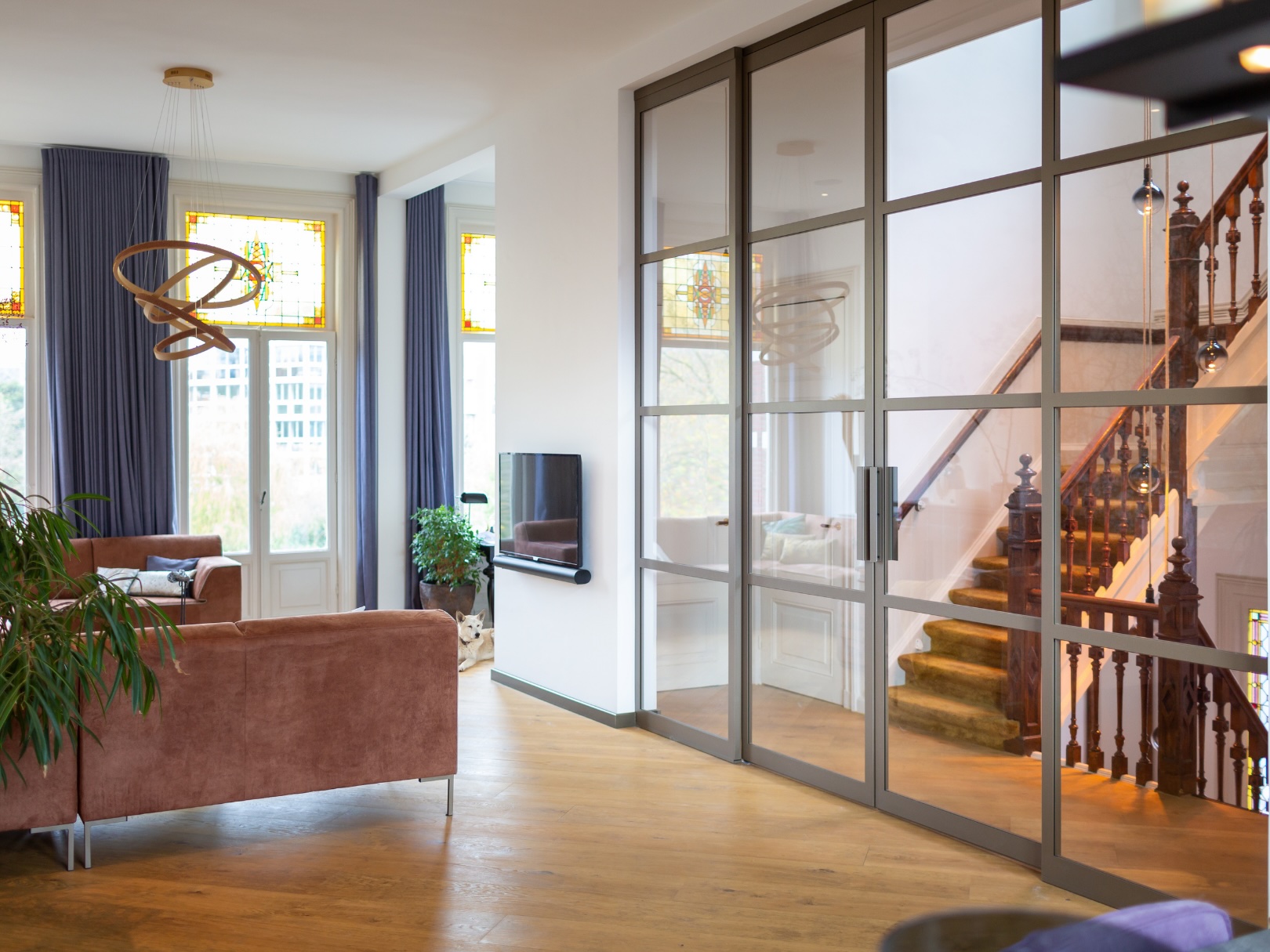 Een stalen schuifdeur schuift langs of in de wand en bespaart daardoor ruimte. Dankzij het ranke stalen profiel en het royale glasoppervlak ontstaat een lichte, open en moderne uitstraling.