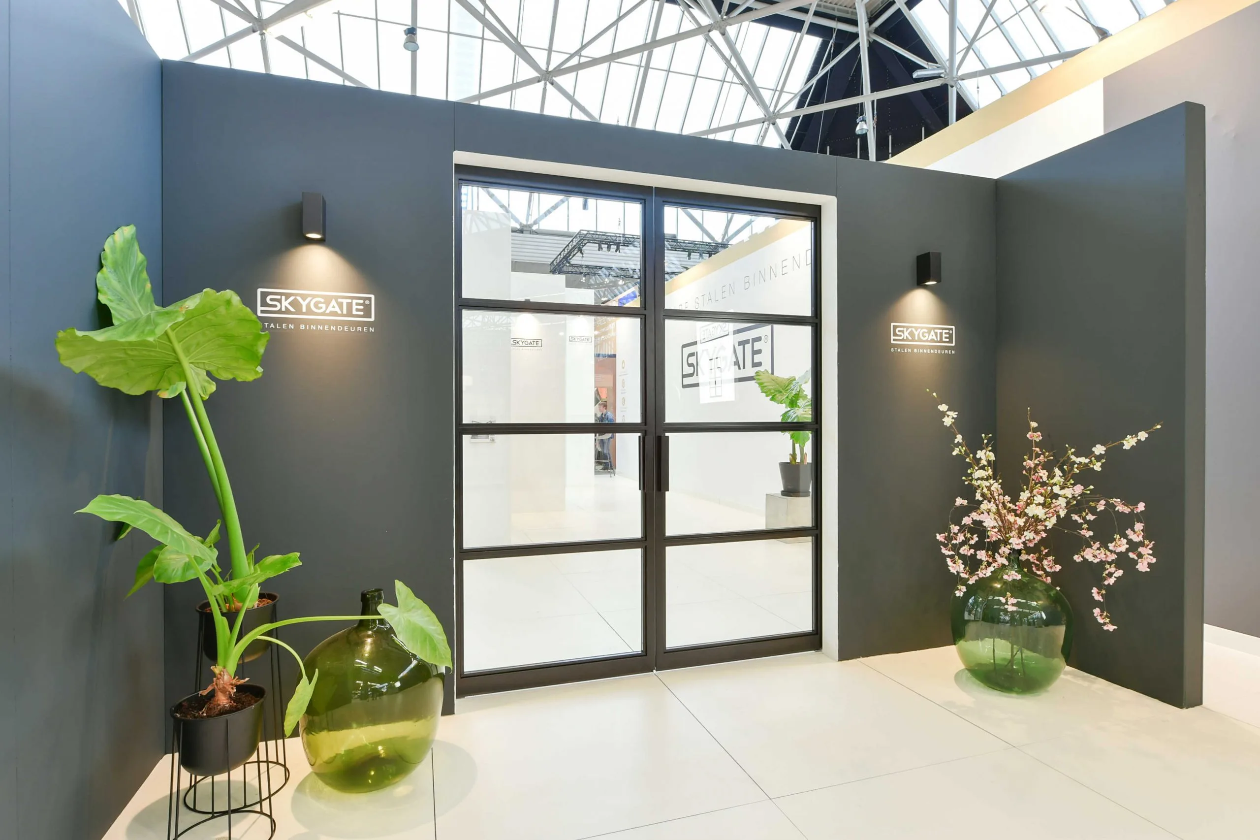 Dubbele schuifdeuren scheiden ruimtes op een elegante manier en houden licht en ruimte volledig in verbinding. Met de stalen kwaliteit van Skygate voeg je een strakke en tijdloze boost toe aan jouw interieur.